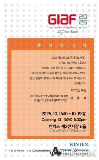 어웨이크뉴스 오경하 기자 | 고양특례시가 후원하고 (사)한국예술문화단체총연합회 고양지회가 주최, (사)한국미술협회 고양지부가 주관하는 ‘제24회 고양국제아트페어’가 오는 10월 16일부터 19일까지 킨텍스 제2전시장 6홀에서 열린다.
