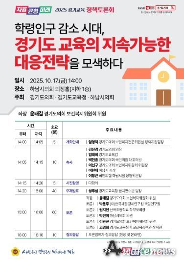 어웨이크뉴스 오경하 기자 | 경기도의회 보건복지위원회 윤태길 의원(국민의힘, 하남1)은 오는 10월 17일 오후 2시, 하남시의회 의정홀(지하 1층)에서 '학령인구 감소 시대, 경기도 교육의 지속가능한 대응전략을 모색하다'를 주제로 정책토론회를 개최한다.