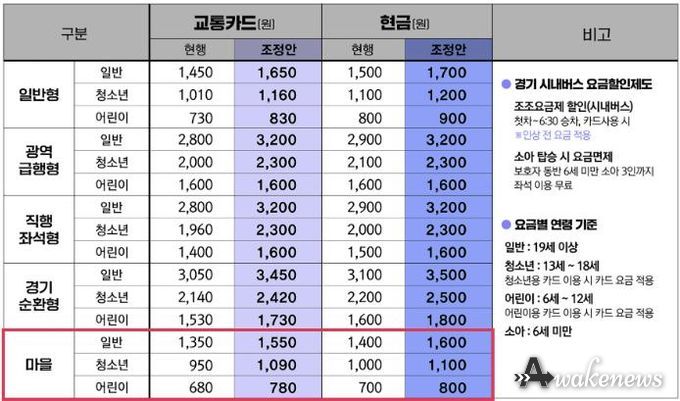 어웨이크뉴스 오경하 기자 | 오는 25일 첫차부터 성남 지역 시내·마을·광역버스 등의 요금이 인상된다.
