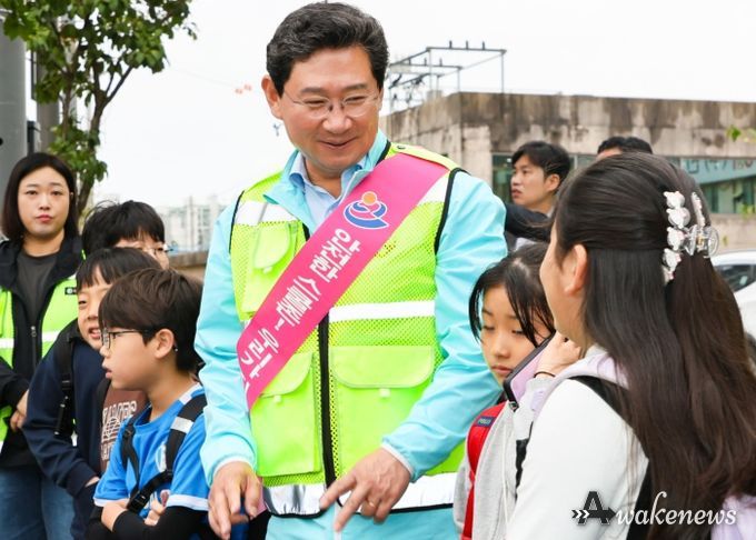 어웨이크뉴스 오경하 기자 | 이상일 용인특례시장은 14일 아침 처인구 고림로에 위치한 고진초등학교 정문 횡단보도에서 어린이들의 안전한 통학환경 조성을 위한 교통지도 봉사활동에 참여하고 학교 주변 통학로를 점검했다.