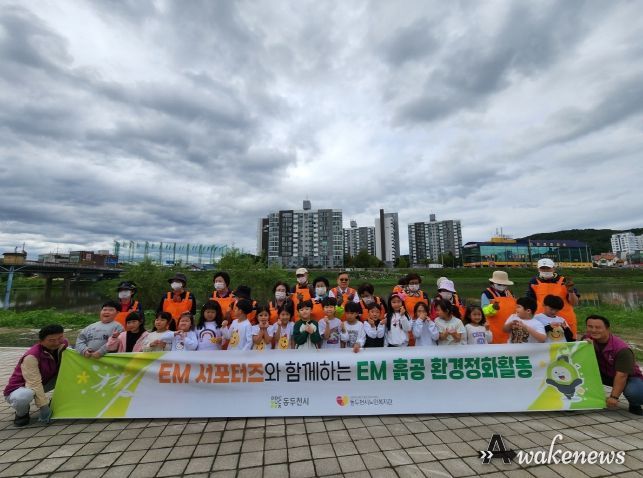 어웨이크뉴스 오경하 기자 | 동두천시는 지난 14일 신천교 부근에서 동두천시노인복지관 EM서포터즈 어르신 15명과 관내 좋은열매어린이집 원아 18명이 참여한 가운데 ‘EM 흙공 던지기’ 행사를 진행했다.