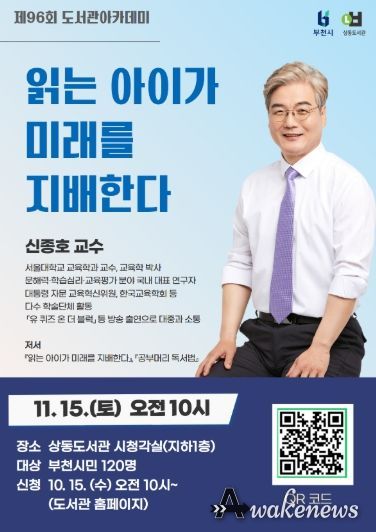 어웨이크뉴스 오경하 기자 | 부천시는 11월 15일 오전 10시 부천시립상동도서관 시청각실에서 인공지능(AI)·디지털 시대 학습 경쟁력의 핵심인 문해력을 주제로 ‘제96회 도서관 아카데미’를 연다. 이번 강연은 ‘읽는 아이가 미래를 지배한다’의 저자이자 서울대학교 교육학과 교수인 신종호 교수를 초청해 진행한다.