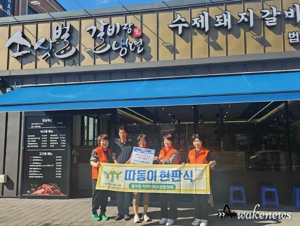 어웨이크뉴스 오경하 기자 | 평택시 동삭동 지역사회보장협의체는 지난 15일 관내 취약계층 10가구에 월 2회 정기적으로 5가지 밑반찬을 지원할 예정인 소삿벌 법원직영점에 ‘따동이’ 5호점 현판을 전달했다.