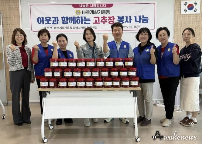 어웨이크뉴스 오경하 기자 | 광명시 일직동 바르게살기위원회는 지난 15일 관내 어려운 이웃을 돕기 위해 ‘이웃과 함께 하는 고추장 나눔 봉사’ 활동을 실시했다.