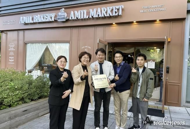 어웨이크뉴스 오경하 기자 | 수원시 권선구 금곡동 지역사회보장협의체는 지난 16일, 지역 내 어려운 이웃을 돕고 나눔 문화를 확산하기 위해 ‘사랑나눔가게’ 11호점 던킨 수원호매실점, 12호점 애밀베이커리에 현판을 전달했다.