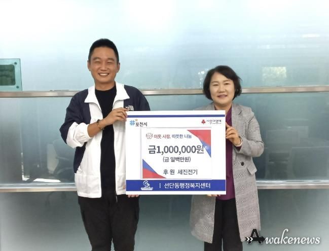 어웨이크뉴스 오경하 기자 | 선단동은 세진전기와 군내종합설비에서 각각 이웃돕기를 위한 100만 원을 전달했다고 밝혔다.