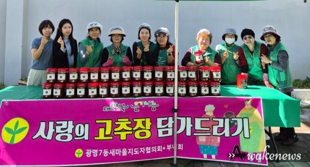 어웨이크뉴스 오경하 기자 | 광명시 광명7동 새마을부녀회는 16일 광명7동 행정복지센터 공유부엌에 모여 ‘사랑의 고추장 나눔 행사’를 열었다.