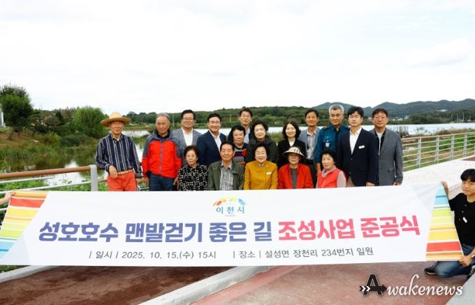 어웨이크뉴스 오경하 기자 | 이천시가 10월 15일, 설성면 성호호수 맨발걷기 좋은길 조성사업 준공식을 했다. 이번 준공식에는 김경희 이천시장을 비롯한 박명서 이천시의회 의장, 허원 경기도의회 건설교통위원장과 설성면 기관·사회 단체장 및 지역 주민들이 참석했다.