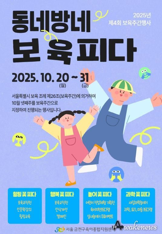 어웨이크뉴스 오경하 기자 | 금천구는 20일부터 31일까지 금천구 곳곳에서 보육주간행사 ‘동네방네 보육피다’를 개최한다고 밝혔다.