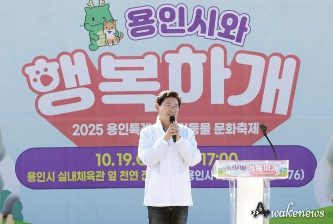 어웨이크뉴스 오경하 기자 | 이상일 용인특례시장은 19일 처인구 마평동의 ‘SERI PAK with 용인’ 앞 천연잔디광장에서 열린 ‘2025 용인시와 행복하개’ 축제에 참석해 반려동물 가족과 함께 소통하는 시간을 가졌다.