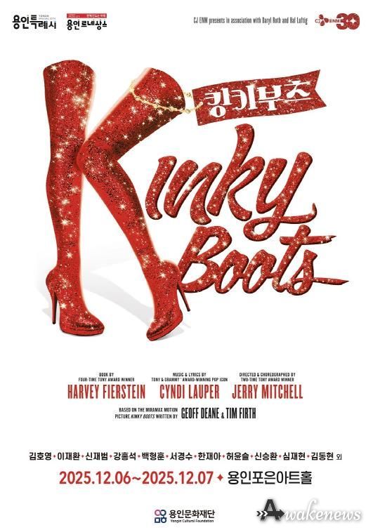 어웨이크뉴스 오경하 기자 | 용인문화재단은 오는 12월 6일부터 7일까지 용인포은아트홀에서 뮤지컬 ‘킹키부츠’를 선보인다. 이번 공연은 양일간 오후 2시와 7시, 총 4회 진행되며, 관람 연령은 만 8세 이상으로 미취학 아동은 입장이 불가하다.