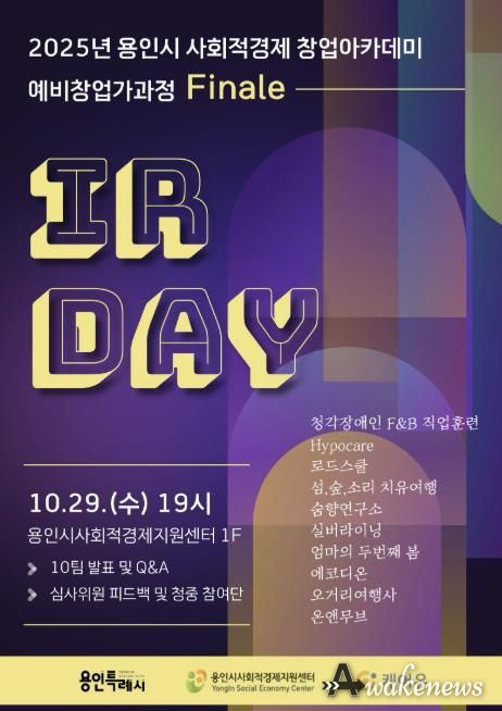 어웨이크뉴스 오경하 기자 | 용인특례시는 오는 29일 열리는 ‘사회적경제 창업아카데미 파이널 IR 데모데이’에 참가할 ‘청중평가단’을 모집한다고 22일 밝혔다.