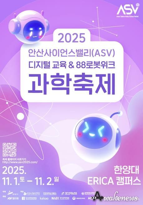 어웨이크뉴스 오경하 기자 | 안산시는 11월 1일부터 2일까지 이틀간 한양대학교 ERICA캠퍼스에서 ‘미래와 함께하는 혁신도시 안산, ASV’라는 슬로건으로 ‘2025 안산사이언스밸리(ASV) 과학축제’를 개최한다고 22일 밝혔다.