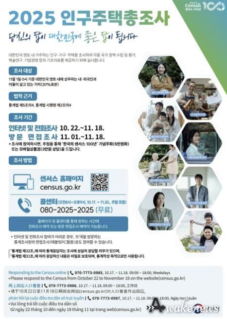 어웨이크뉴스 오경하 기자 | 의왕시는 10월 22일부터 11월 18일까지 통계청 주관 하는‘2025 인구주택총조사’를 실시한다고 밝혔다.