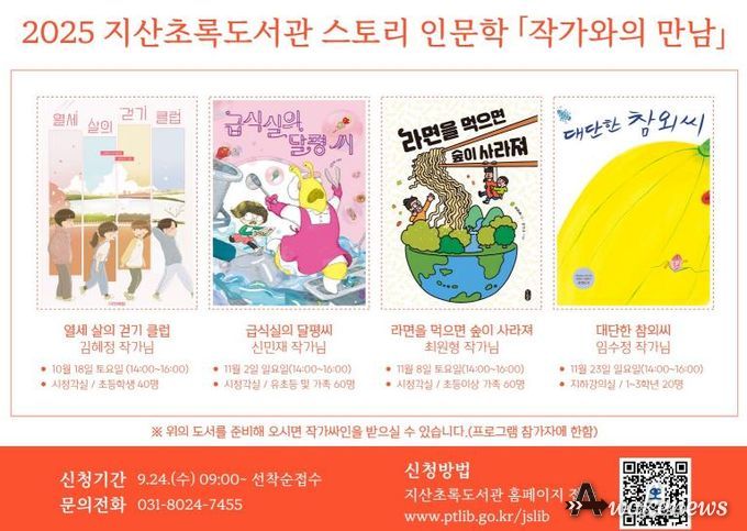 이번 프로그램은 전 세대가 함께 즐길 수 있는 독서 인문학의 장으로, 프로그램 관련 문의는 지산초록도서관(031-8024-7455)으로 가능하다. (사전접수 마감) 도서관 관계자는 “지역 어린이들이 작가와의 만남을 통해 책의 세계를 한층 깊이 느끼고 창의적인 영감을 얻는 계기가 되길 바란다”라고 전했다.