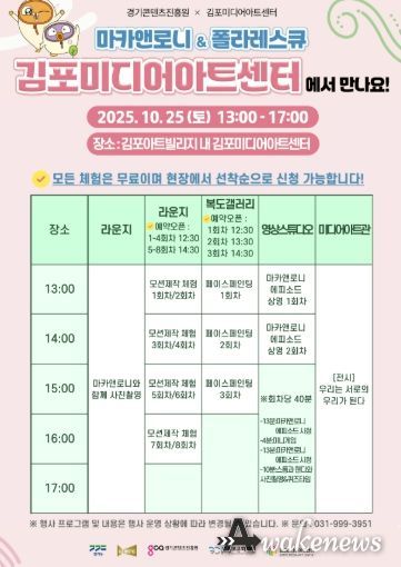 이번 행사는 사전 신청 없이 누구나 무료로 참여할 수 있으며, 자세한 사항은 김포문화재단 홈페이지를 참고하거나 김포미디어아트센터팀에 문의하면 된다.