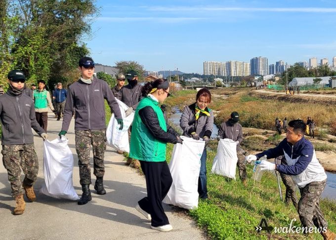 어웨이크뉴스 오경하 기자 | 새마을문고 양주시지부는 10월 21일 오전 8시 50분부터 약 2시간 동안 독수리병영도서관 장병들과 함께 부대 앞 샘내 일대 천변에서 ‘건강과 환경을 지키는 줍킹데이’ 행사를 성황리에 개최했다.