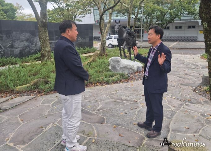 어웨이크뉴스 오경하 기자 | 경기도의회 농정해양위원회 부위원장 윤종영 의원(국민의힘, 연천)은 10월 22일 한국마사회 제주본부를 방문해 군마 ‘레클리스’ 기념행사의 의미를 공유하고, 경기도와 제주특별자치도, 한국마사회 간 협력 방안을 논의했다.