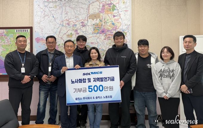 이날 기탁식에서 솔믹스㈜ 관계자는 “노사가 마련한 이 성금이 도움이 필요한 분들께 작은 위로와 희망이 되길 바라며, 앞으로도 지역사회에 따뜻한 온기를 전할 수 있도록 지속적인 나눔을 이어가겠다”라고 전했다.