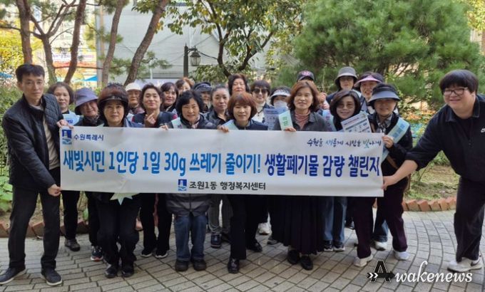 어웨이크뉴스 오경하 기자 | 수원시 장안구 조원1동은 지난 29일 수원시에서 추진 중인 ‘생활쓰레기 감량 챌린지’의 일환으로 민관합동 생활쓰레기 감량 릴레이 캠페인을 실시했다.