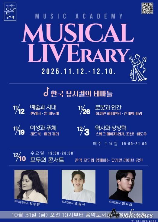 어웨이크뉴스 오경하 기자 | 의정부음악도서관은 ‘Musical LIVErary’를 주제로 11월 12일부터 12월 10일까지 ‘뮤직아카데미: 뮤지컬 편’을 운영한다.
