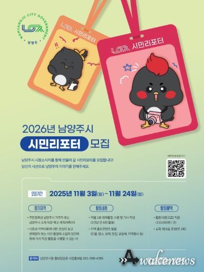 어웨이크뉴스 오경하 기자 | 남양주시는 2026년 시정소식지 제작에 직접 참여할 시민리포터 16명을 오는 11월 3일부터 24일까지 모집한다.
