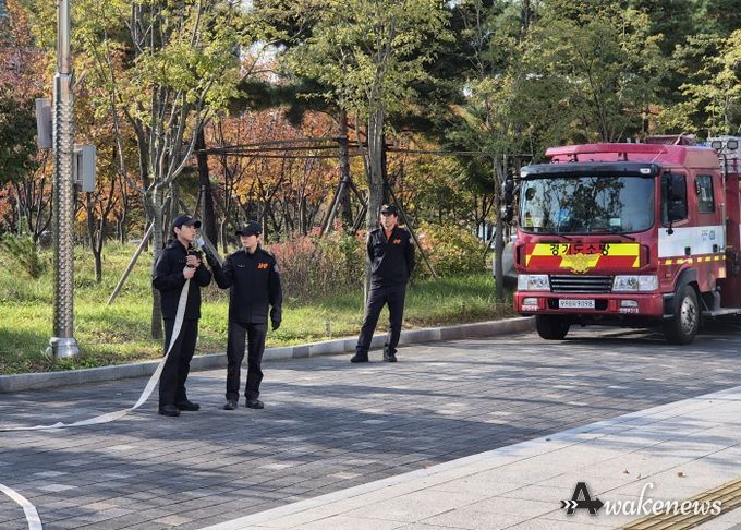 어웨이크뉴스 오경하 기자 | 경기도교육청이 4일 북부청사에서 의정부소방서 금오119안전센터와 함께 합동 소방훈련을 실시했다.