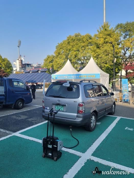 어웨이크뉴스 오경하 기자 | 수원특례시는 5일 수원종합운동장 주차장에서 수도권대기환경청, 배출가스저감장치(DPF) 제작사와 함께 관내 DPF 부착 차량을 대상으로 합동점검을 했다.