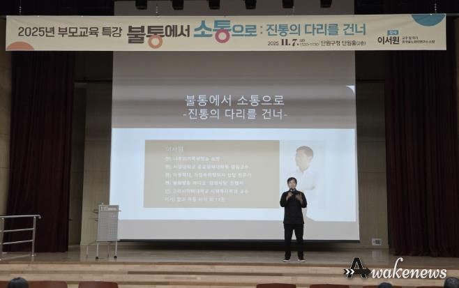 어웨이크뉴스 오경하 기자 | 안산시는 단원구청 단원홀에서 ‘불통에서 소통으로: 진통의 다리를 건너’를 주제로 부모교육 특강을 진행했다고 11일 밝혔다.