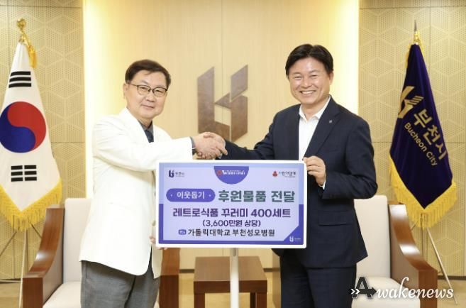 어웨이크뉴스 오경하 기자 | 부천시는 지난 10일 시청 만남실에서 부천성모병원 성가자선회가 3천600만 원 상당의 레트로식품 꾸러미 400세트를 기탁해 전달식을 진행했다고 11일 밝혔다. 이번 전달식은 겨울을 앞두고 주거 환경이 열악한 1인 가구와 저소득층 등 취약계층의 생활 안정을 돕기 위해 마련됐다.