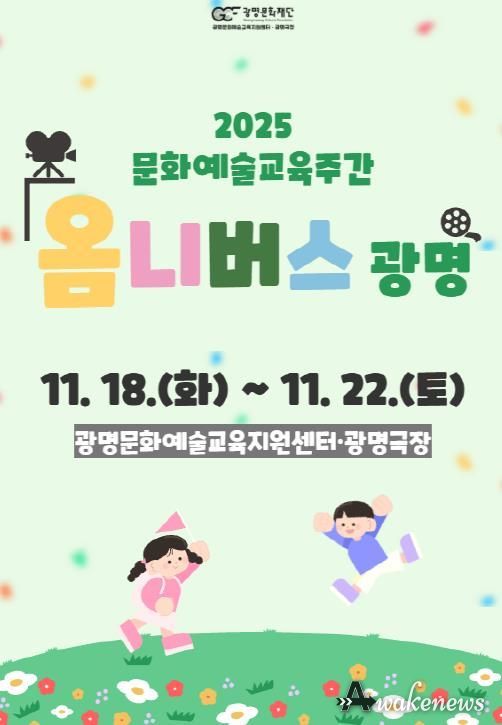 어웨이크뉴스 오경하 기자 | (재)광명문화재단은 오는 11월 18일부터 22일까지 광명문화예술교육지원센터·광명극장에서 2025 문화예술교육주간‘옴니버스 광명’을 개최한다.