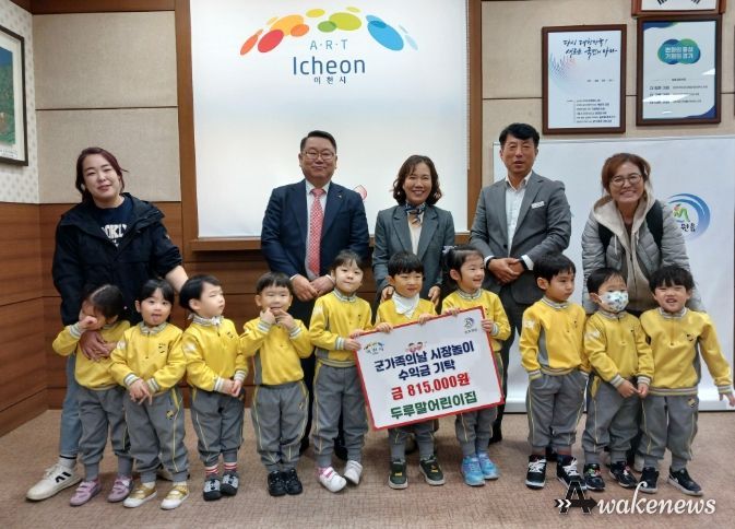 어웨이크뉴스 오경하 기자 | 이천시 장호원읍 두루말어린이집은 11월 11일, 어린이들과 함께 장호원읍행정복지센터에 방문해 군가족의 날 아나바다 시장놀이 행사의 수익금 815,000원을 전달했다.