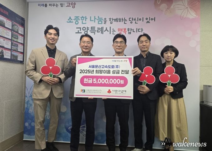 어웨이크뉴스 오경하 기자 | 고양특례시는 지난 11일 서울문산고속도로(주)에서 어려운 이웃을 위한 성금 500만원을 기탁했다고 밝혔다.