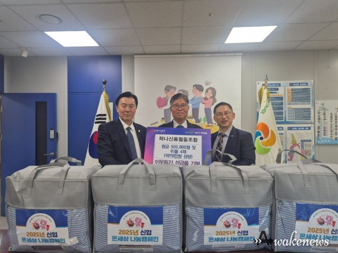 어웨이크뉴스 오경하 기자 | 하나신협은 지난 11일, 회천2동 행정복지센터에 이웃돕기 성금과 성품을 전달했다.