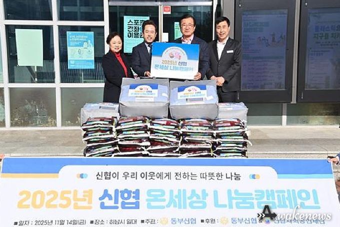어웨이크뉴스 오경하 기자 | 하남시 덕풍1동 행정복지센터는 동부신협이 ‘온세상 나눔 캠페인’의 일환으로 겨울철 취약계층을 돕기 위해 쌀(10kg) 40포와 이불 5채를 기부했다고 14일 밝혔다.