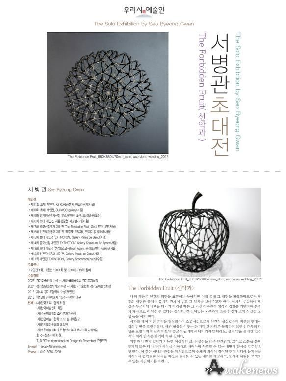 어웨이크뉴스 오경하 기자 | 북수원도서관이 11월 18일부터 30일까지 1층 갤러리에서 ‘우리시 예술인 서병관 초대전 – The Forbidden Fruit(선악과)’을 연다.