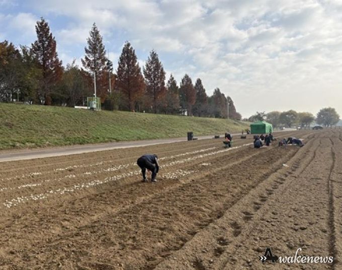 튤립 구근은 지난 11일 행정복지센터로 배송됐으며, 즉시 식재 작업이 본격적으로 시작됐다. 이틀간 노인일자리 참여자 50여 명이 투입돼 대량의 구근 껍질을 신속히 제거했고, 직원들은 구근을 공릉천 현장으로 이송했다. 현장에서는 기간제 및 공공근로 인력이 곧바로 식재 작업에 돌입했다.