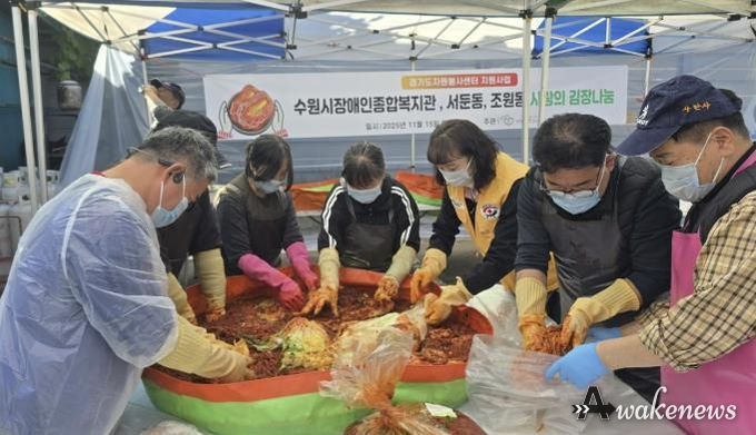 어웨이크뉴스 오경하 기자 | 수원시 장안구 조원1동은 지난 15일 사랑을 만드는 사람들 봉사회가 조원1동 취약계층을 위해 김장김치 10kg 50개를 조원1동 행정복지센터에 기부했다고 전했다.