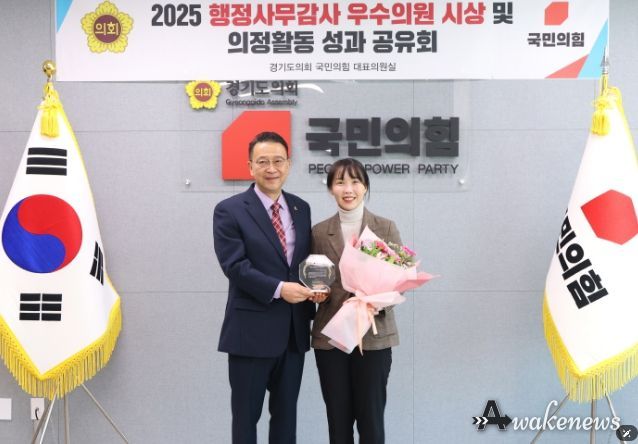 어웨이크뉴스 오경하 기자 | 경기도의회 이인애 의원(여성가족평생교육위원회, 국민의힘, 고양2)은 18일 경기도의회 국민의힘 대표실에서 2025년 행정사무감사 우수의원으로 선정되어 상패를 받았다.
