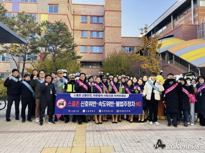 어웨이크뉴스 오경하 기자 | 시흥시는 지난 11월 18일 오전 은빛초등학교 앞에서 초등학생들의 안전한 등굣길을 조성하기 위해 ‘어린이 교통안전 캠페인’을 진행했다.