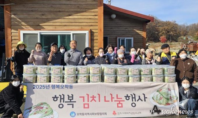 어웨이크뉴스 오경하 기자 | 2025년 11월 17일, 오학동지역사회보장협의체는 지역 내 취약계층에 사랑을 전하는 ‘행복 김치 나눔 행사’를 성공적으로 진행했다.