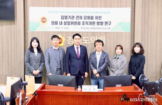 어웨이크뉴스 오경하 기자 | 경기도의회 자치분권발전위원회 총무행정분과 이은주 위원장(국민의힘, 구리2)은 11월 19일, 「집행기관 견제 강화를 위한 의회 내 상임위원회 조직개편 방향 연구」 중간보고회를 주재했다. 이번 회의는 지난 9월 29일 열린 착수보고회 이후 연구 추진 경과를 점검하고, 향후 연구 방향을 구체화하기 위해 마련됐다.
