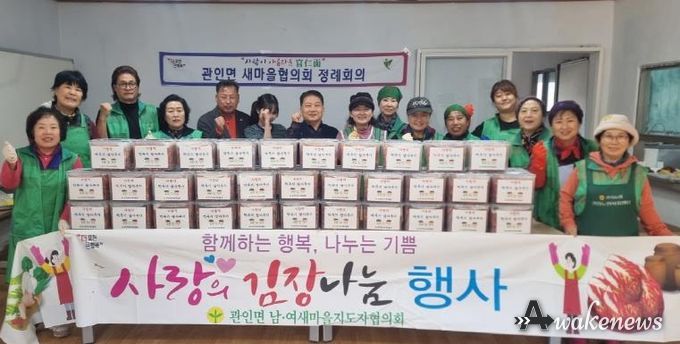 어웨이크뉴스 오경하 기자 | 포천시 관인면 새마을부녀회는 지난 19일 관인교회에서 지역 내 취약계층 이웃들에게 따뜻한 온정을 전하기 위한 김장김치 나눔 행사를 진행했다.