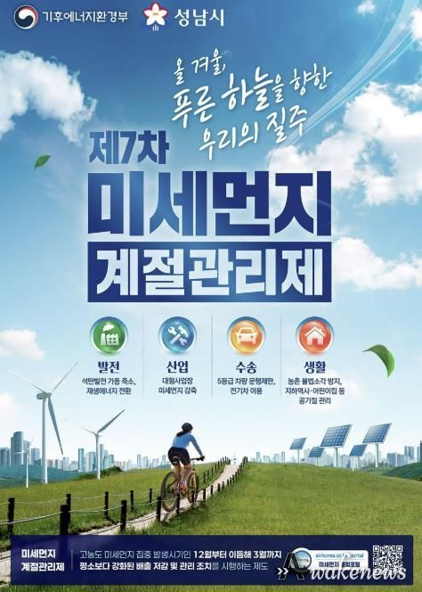 어웨이크뉴스 오경하 기자 | 성남시는 오는 12월 1일부터 내년 3월 말일까지 ‘제7차 미세먼지 계절관리제’를 시행한다.