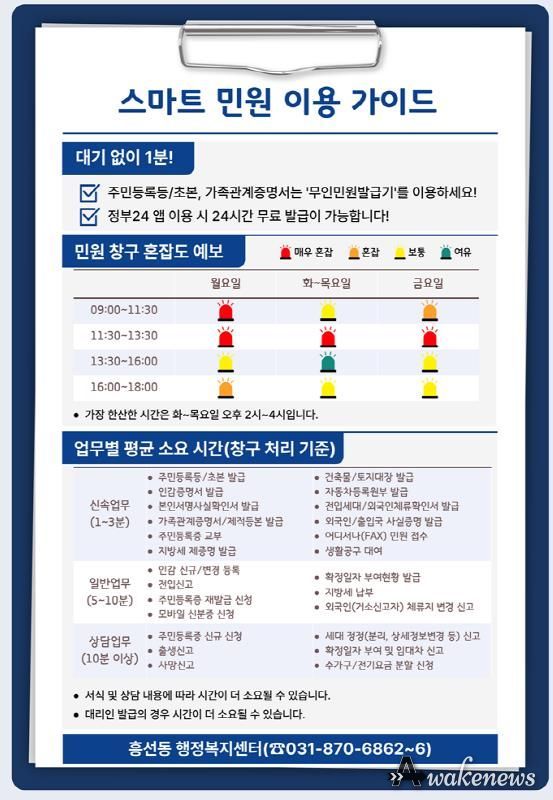 어웨이크뉴스 오경하 기자 | 의정부시 흥선동행정복지센터는 민원인이 대기 중에 겪는 심리적 불안감과 불편을 해소하고, 행정서비스의 예측 가능성을 높이기 위해 ‘민원 대기시간 투명 예보제’를 시행한다.