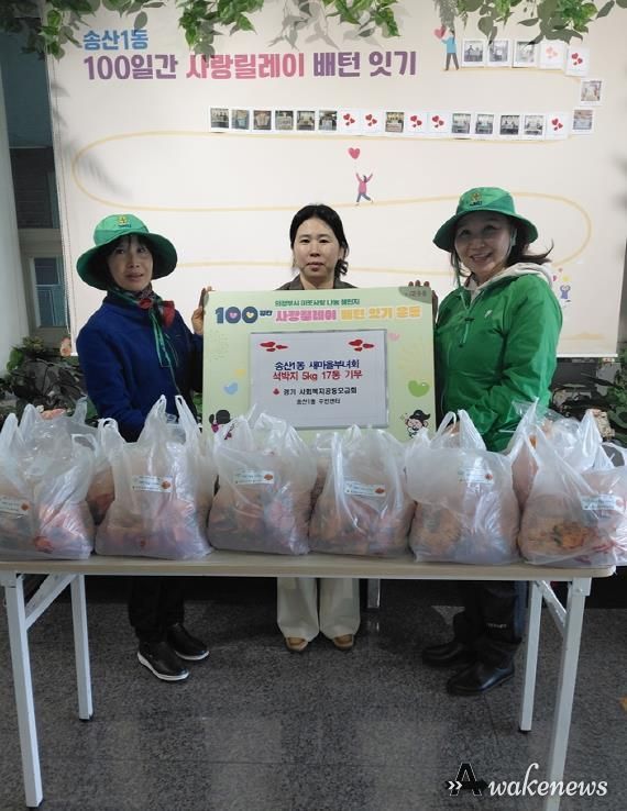 어웨이크뉴스 오경하 기자 | 의정부시 송산1동주민센터는 11월 21일 송산1동 새마을부녀회가 정성껏 만든 석박지 17통을 관내 독거노인에게 전달했다고 밝혔다.