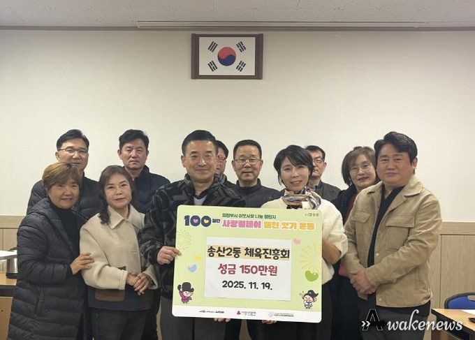 어웨이크뉴스 오경하 기자 | 의정부시 송산2동주민센터는 11월 19일 송산2동 체육진흥회가 ‘100일간 사랑릴레이 배턴 잇기’에 동참해 지역 내 어려운 이웃을 위해 성금 150만 원을 기탁했다고 밝혔다.