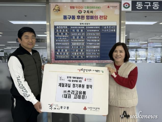 어웨이크뉴스 오경하 기자 | 구리시 동구동 행정복지센터는 지난 21일 ㈜쓰리고유통과 동구동 '행복 드림 냉장고 사업' 활성화를 위한 제철 과일 정기후원 협약을 체결했다고 밝혔다.