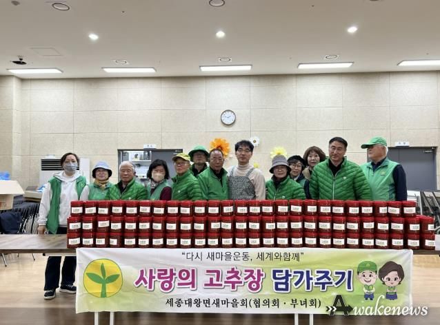 어웨이크뉴스 오경하 기자 | 여주시 세종대왕면 남‧녀 새마을회는 지난 21일 회원 20여 명이 참여한 가운데 ‘헌 옷 수집 운동’ 과 정성껏 만든 고추장과 김치, 직접 재배한 쌀을 28개 마을에 전달하는 ‘사랑의 고추장 담그기 행사’를 진행했다.