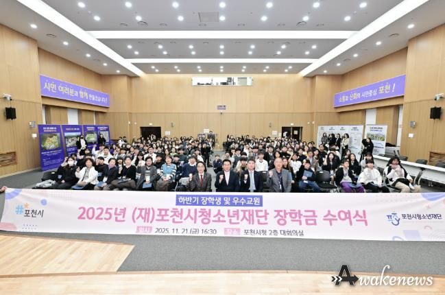 어웨이크뉴스 오경하 기자 | (재)포천시청소년재단은 지난 21일 포천시청 대회의실에서 2025년 하반기 장학금 수여식을 개최해 장학생과 학부모 등 200여 명이 참석해 축하와 격려를 나누는 뜻깊은 시간을 가졌다.